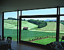 Im Untergeschoss befinden sich Garage, Technik und Nebenräume. Das Wohngeschoss darüber kann auch über eine Auffahrt auf das Wohnniveau erreicht werden. Die Wohnebene wurde als offene Raumstruktur konzipiert. Alle Raumbereiche können durch raumhohe Schiebeelemente wechselweise offen und geschlossen gestaltet werden. Die Sanitäranlagen sind barrierefrei ausgeführt. Auf dem Untergeschoss in Ortbetonbauweise wurde das Wohngeschoss in Kreuzlagenholzbauweise errichtet. Ein ex- tensives Gründach und sonnenstandgesteuerte, außen liegende Sonnenschutzanlagen vor den raumhohen Glasfassaden gewährleisten in der warmen Jahreszeit ein hervorragendes Raumklima ohne Kühlung. Das Gebäude wird mit Erdwärme beheizt und entspricht dem Niedrigenergiestandard.