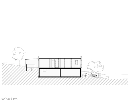 Der Bauherr war 71 Jahre alt, als er sich zum Bau dieses Hauses entschloss. Trotz der Hanglage sollte ein barrierefreies Wohnen möglich gemacht werden.